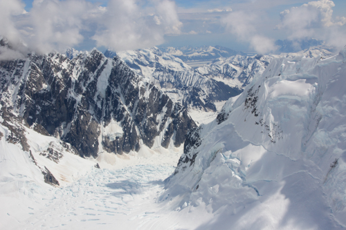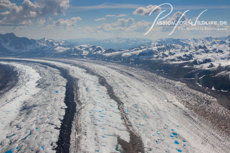 Die Gletscher erstrecken sich über etliche Kilometer durch die Alaska Range.