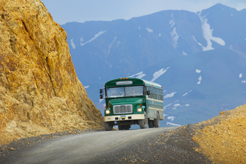 Der bekannteste Nationalpark Alaskas ist der Denali Nationalpark. In ihn führt eine über 90 Meilen lange Straße, die nur mit Parkbussen befahren wird.