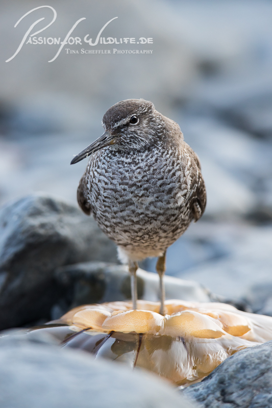 Diese Limikole hat sich eine gestrandete Qualle als Rastplatz ausgesucht.