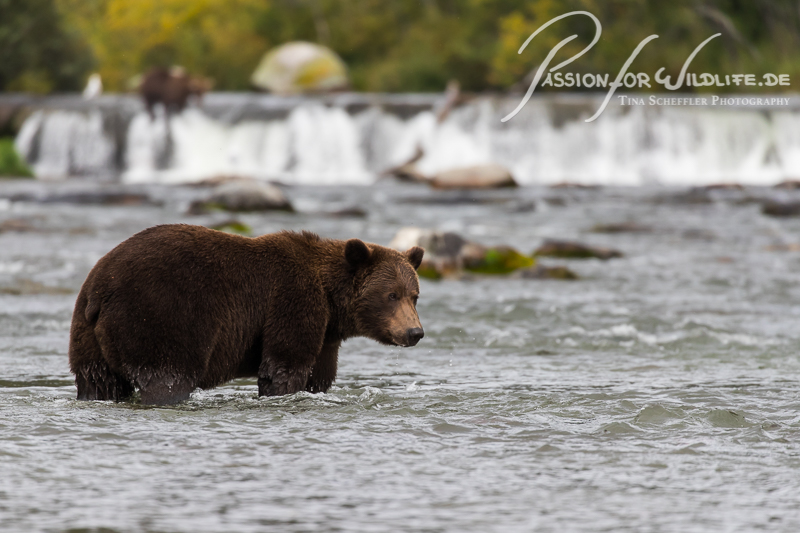Auf dem weiteren Weg zu den Fällen treffen wir immer wieder auf Bären. Manchmal sind sie auf einmal da, ohne jede Vorwarnung.