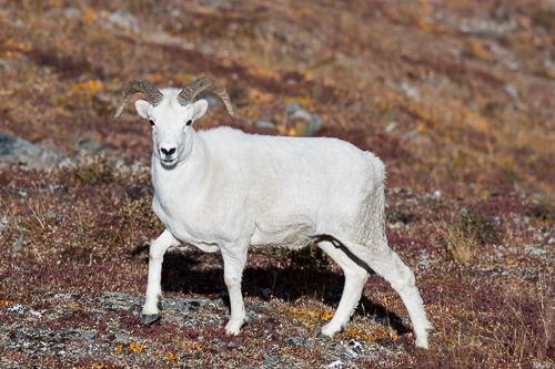 Wir wählen einen Umweg und werden mit dieser Begegnung mit einem Dallschaf belohnt.