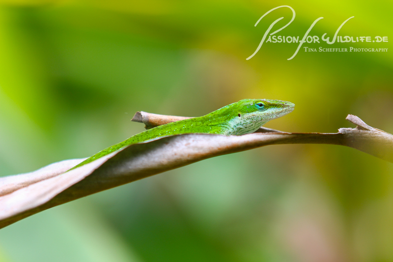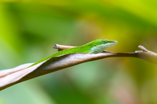 Auf den Inseln sind überall amerikanische Chamäleons (auch: Rotkehlanolis) zu sehen. Sie nutzen die vielen Pflanzen zur Tarnung.