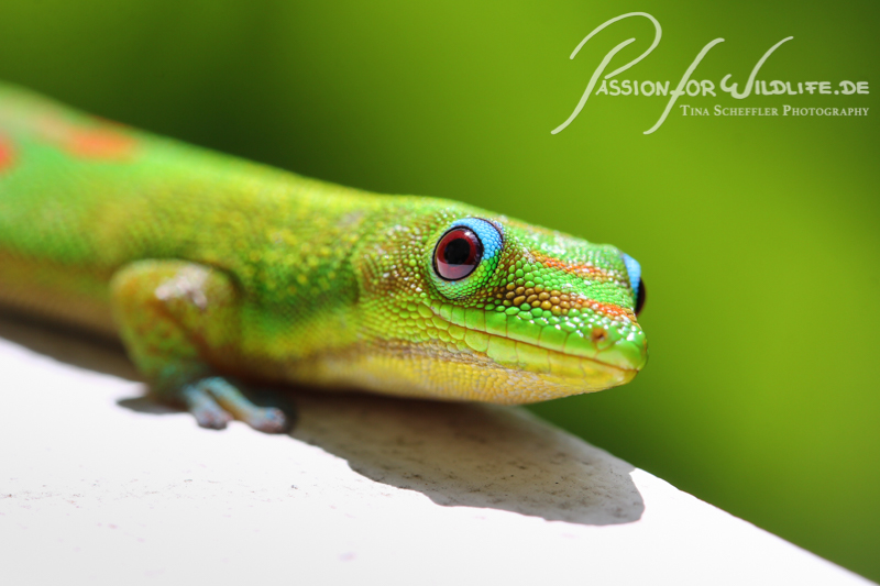 Mit etwas Geduld kommt man ganz nah an die Goldstaub-Taggeckos heran uns und kann ihre wunderschöne Färbung betrachten.