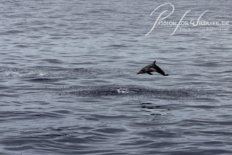 Auch Delfine üben das Springen. Hier ist ein sehr junger Delfin zu sehen.