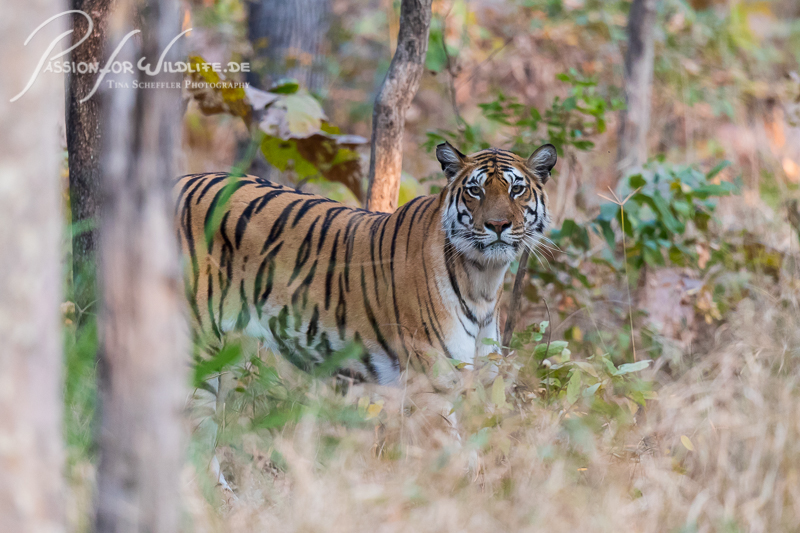 Begegnung mit einem Tigerweibchen im Pench Nationalpark