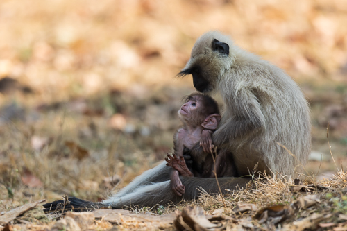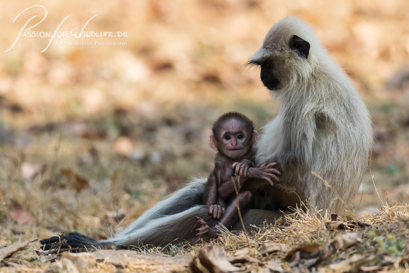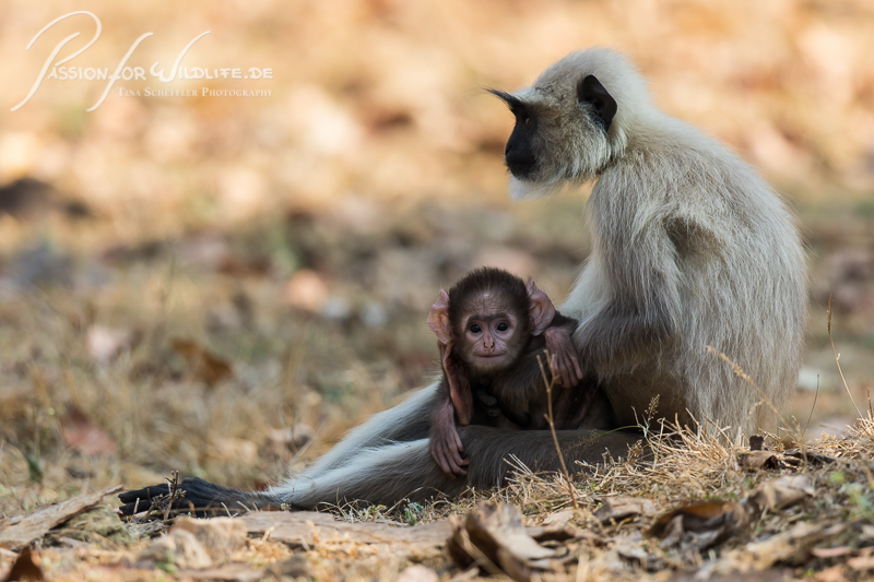 Langurenweibchen mit Baby – entdeckt!