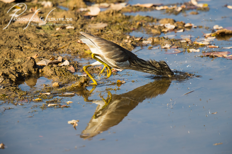 Paddyreiher (Indian pond heron) beim Fischfang