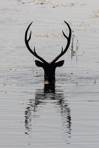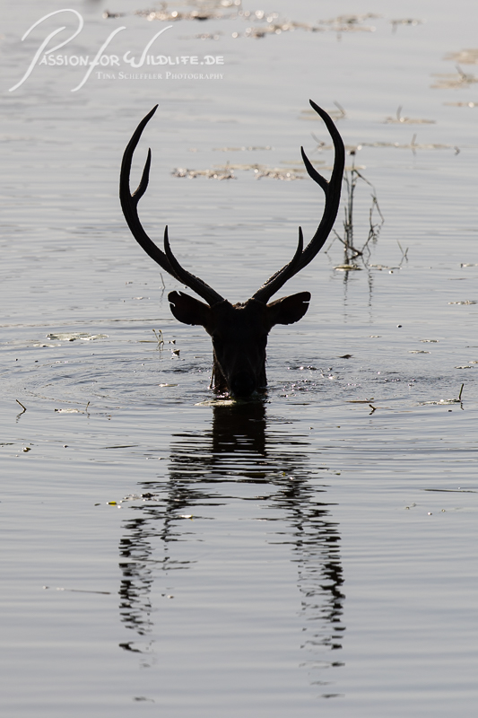 Sambarhirsch frisst Seepflanzen