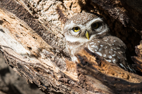 Brahma Kauz (spotted owlet) im Astloch sitzend