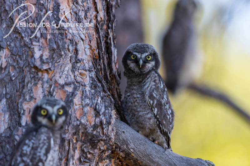 Bei einer Sperbereule bleibt es nicht lange. Plötzlich entdecken wir wenige Meter von uns entfernt drei Jungtiere.