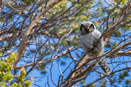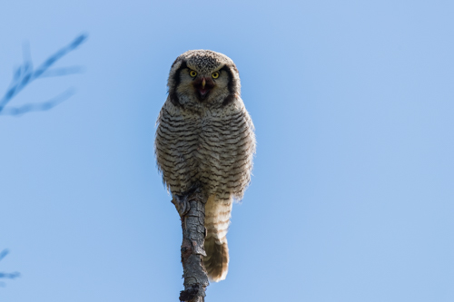 Einige hundert Meter weiter treffen wir auf eine weitere Familie von Sperbereulen. Innerhalb kurzer Zeit sehen wir so 15 (!) Tiere.
