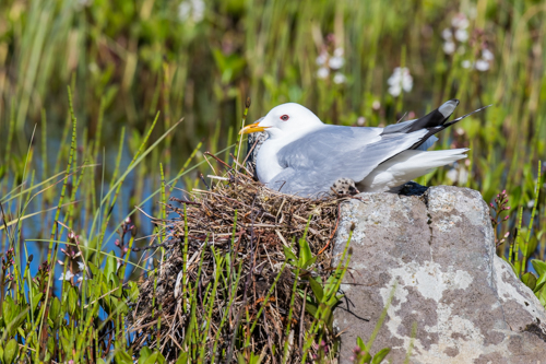 Überall treffen wir auf brütende Dreizehenmöwen. Aber was guckt denn da bereits unter den Federn hervor?