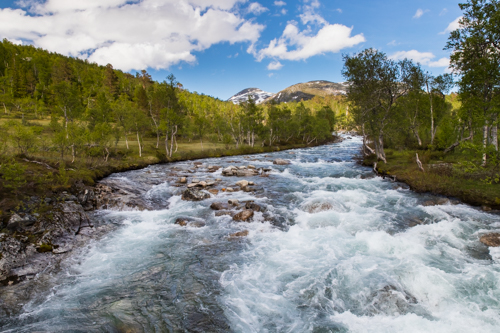 Durch den Børgefjell Nationalpark wandern wir auf Holzbohlen durch Sümpfe und überqueren Flüsse auf Hängebrücken.