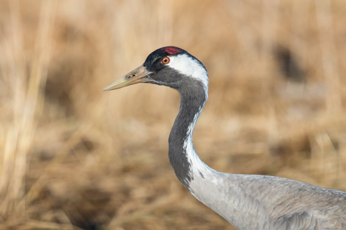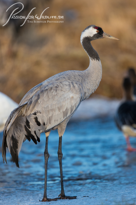 …ist die Augenfarbe bei anderen Kranichen eher bernsteinfarben.