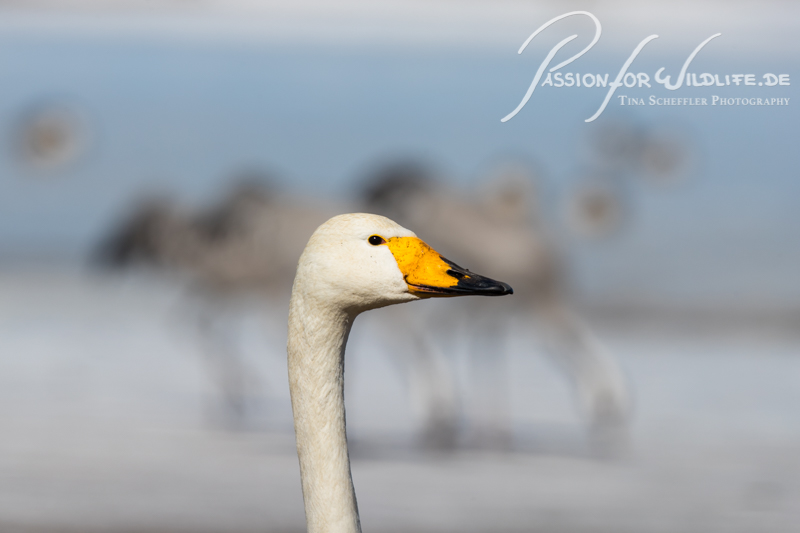 Die Singschwäne nutzen den Rast- und Futterplatz seit einigen Jahren vermehrt auf ihrem Zug nach Norden.