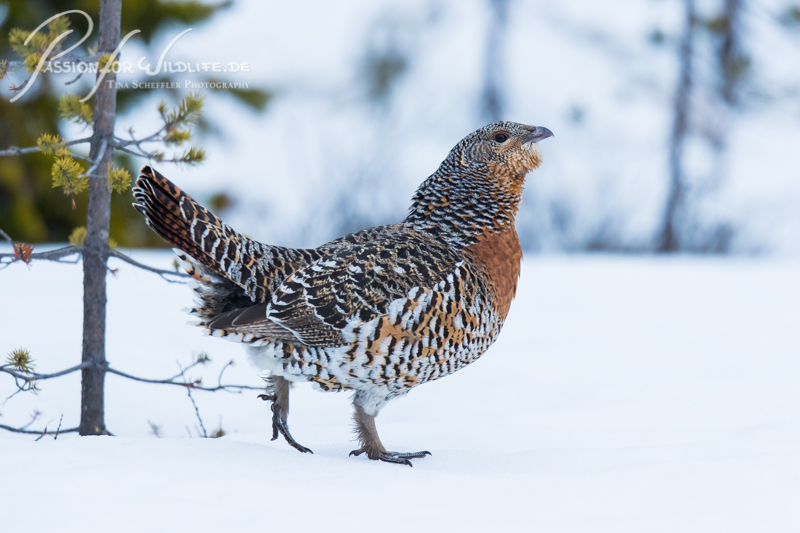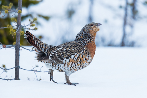 Diese Auerhenne machte sich direkt aus dem Staub, als wir sie entdeckten, und schenkte uns lediglich einen kurzen Blick über die Schulter.