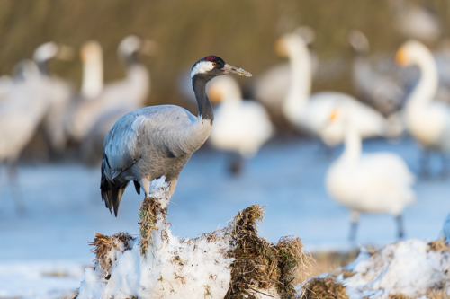 Neben Kranichen sind auch hunderte Singschwäne am Hornborga.
